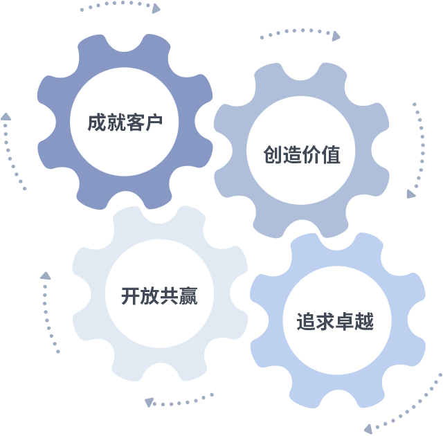 成就客户是一切决策的出发点,创造价值是衡量所有工作的标准,追求卓越是米兰milan做事做人的态度,开放共赢是米兰milan的格局也是最终的结果。价值观的齿轮环环相扣,推动着组织里的每个人不断向前。